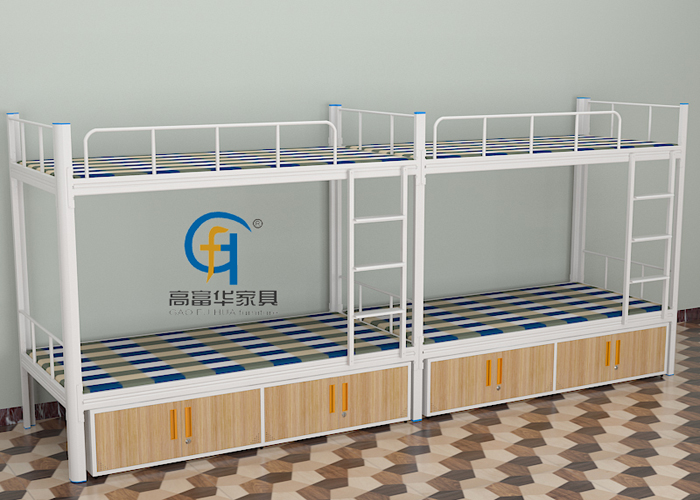 現(xiàn)在上下鋪鐵床的款式種類是多種多樣的,其中帶床底柜的韶關雙層鐵床是使用比例較多的,因為,它不僅可以使有限的宿舍空間增大利用率,而且,能省錢,方便儲物,避免在給學生、員工另配儲物柜,浪費不必要的資金。